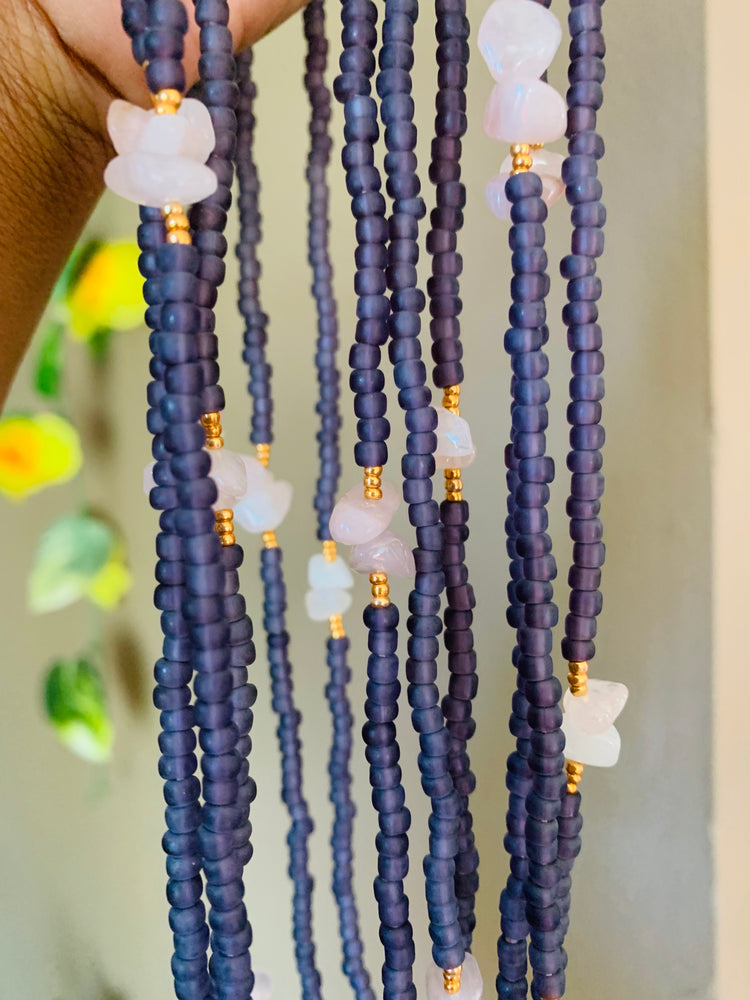 Each strand from this collection is made with beneficial crystals like quartz, amethyst, and opal.