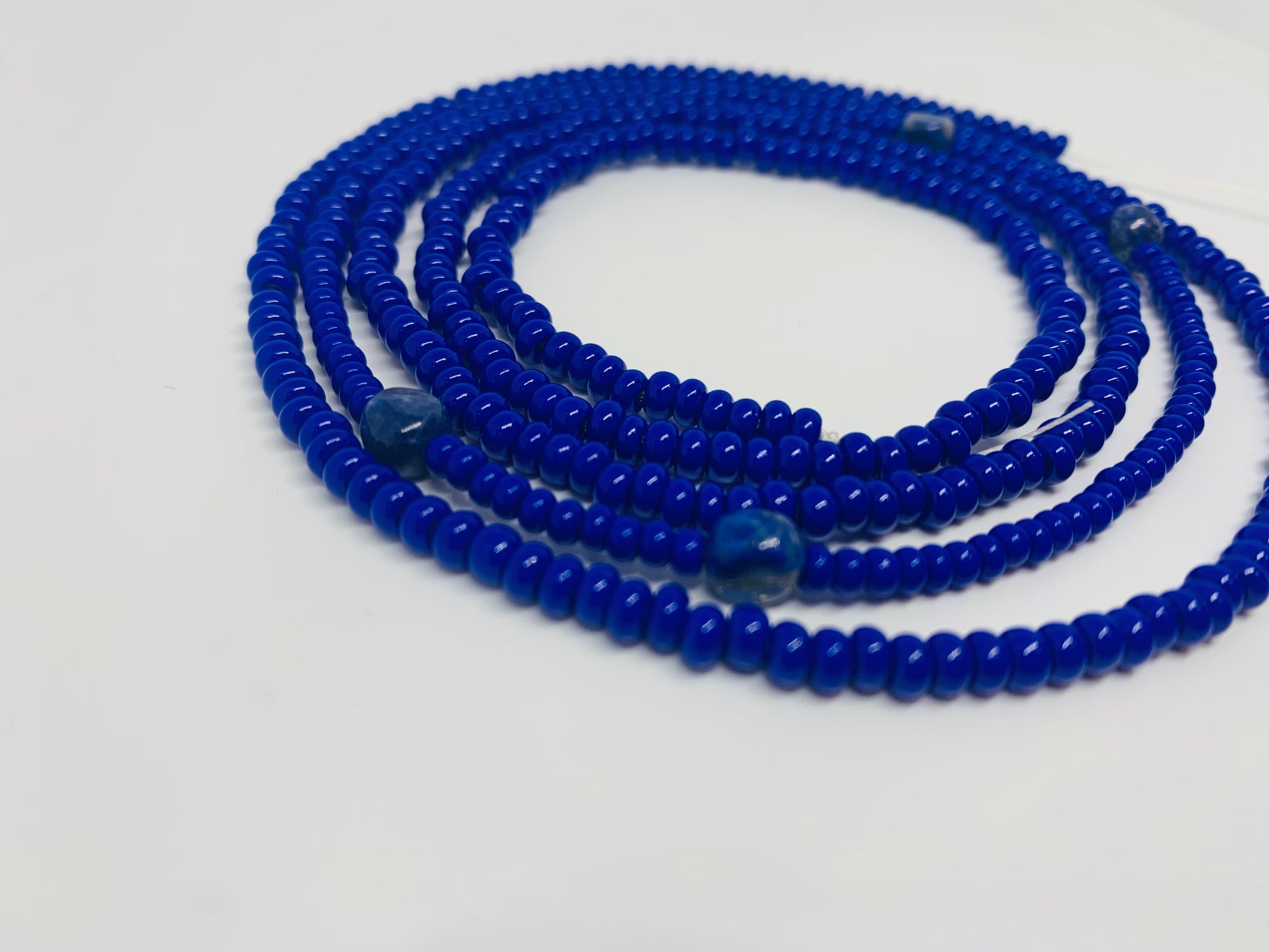Third eye chakra is the sixth chakra and is associated with the color indigo. It lies in the center of the forehead just above the eyebrows (our third eye). Third eye chakra serves as a gateway to our wisdom and intuition within ourselves. It is a bridge that connects our throat and crown chakra. This strand is the color indigo, representing the third eye chakra. It is made with lapis lazuli, its suited crystal attracting wisdom, truth, and good judgement.